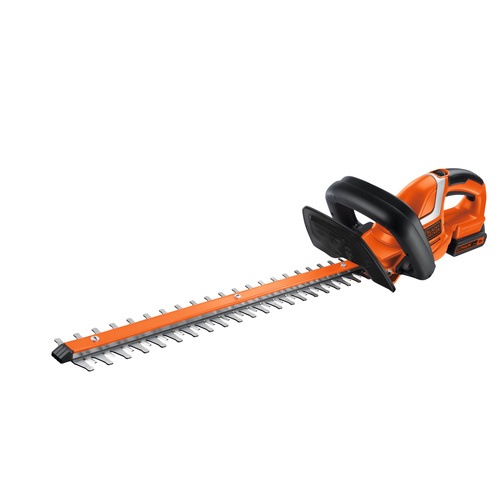 - The hedge trimmer is powered by a 18-volt battery pack.